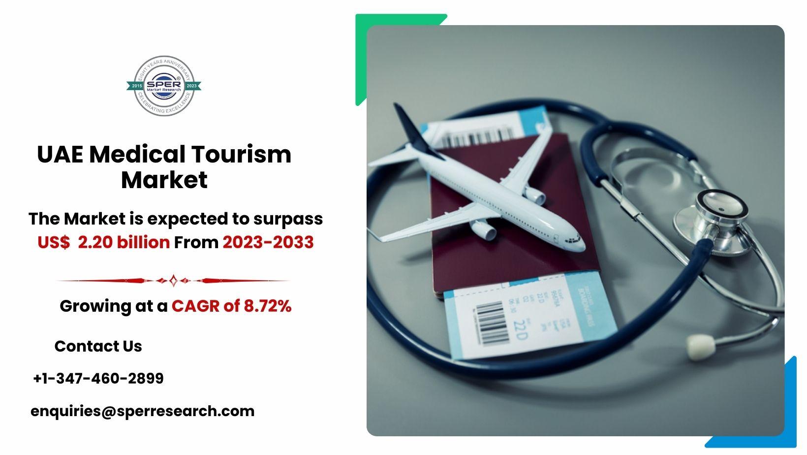 According to SPER market research, ‘UAE Medical Tourism Market Size- By Type, By Treatment Type- Regional Outlook, Competitive Strategies and Segment Forecast to 2033’ state that the UAE Medical Tourism Market is predicted to reach 2.20 billion by 2033 with a CAGR of 8.72%.