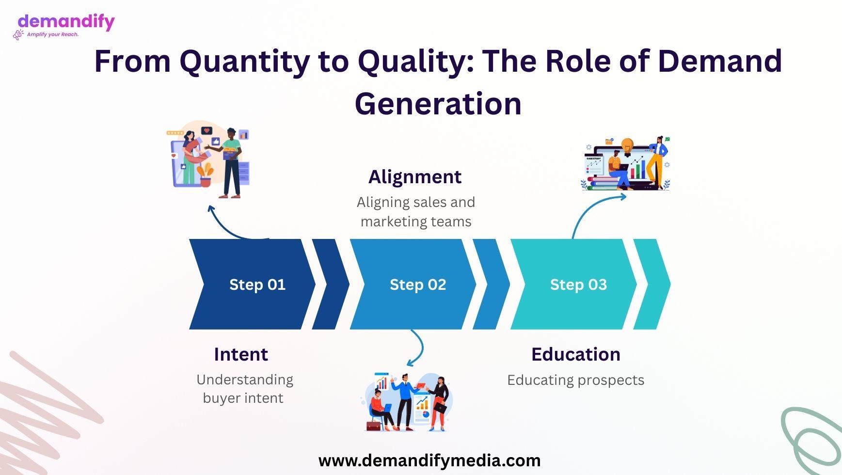 Traditional lead generation often focuses on casting a wide net, resulting in large but less relevant databases of prospects. Demand generation takes a more strategic approach. It emphasizes: