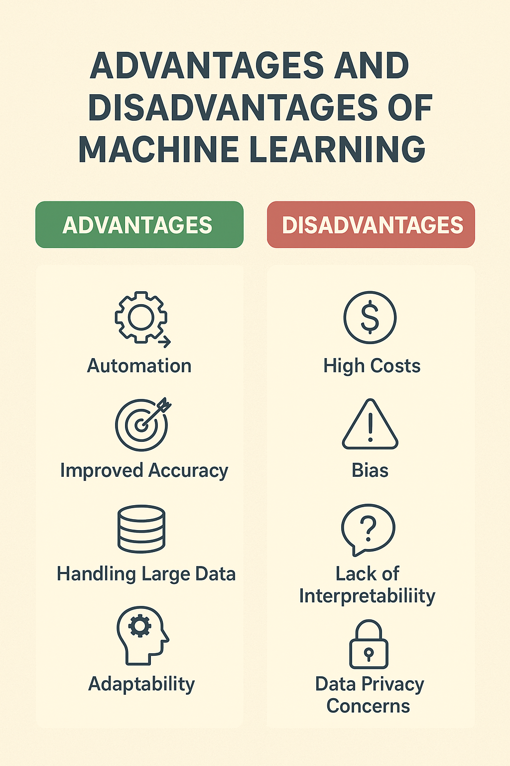 Understanding the advantages and disadvantages of machine learning helps businesses and individuals adopt this technology wisely. While the advantages of machine learning, such as automation, scalability, and personalization, are undeniable, the disadvantages of machine learning like high cost, data dependency, and interpretability issues, cannot be overlooked.