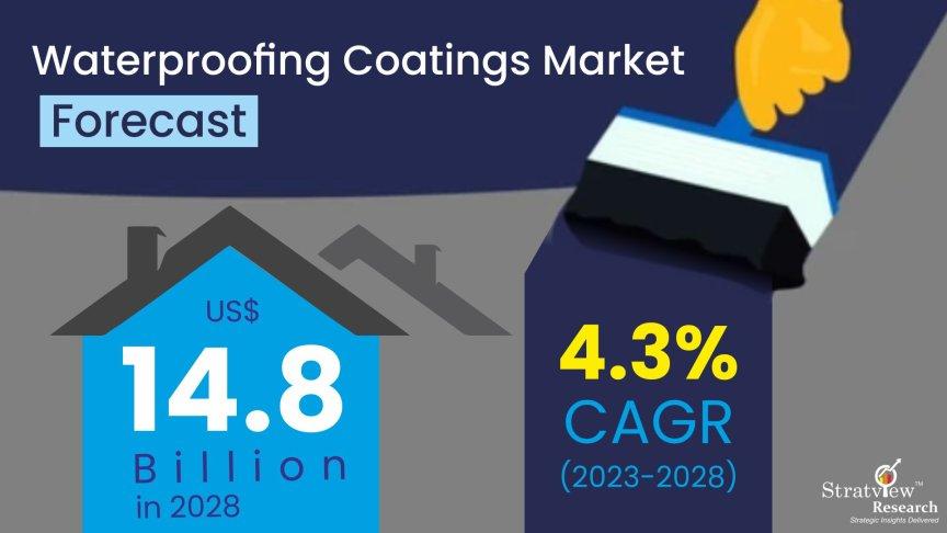The waterproofing coatings market is estimated to grow at a CAGR of 4.3% during the forecast period to reach a value of US$ 14.8 billion in 2028.