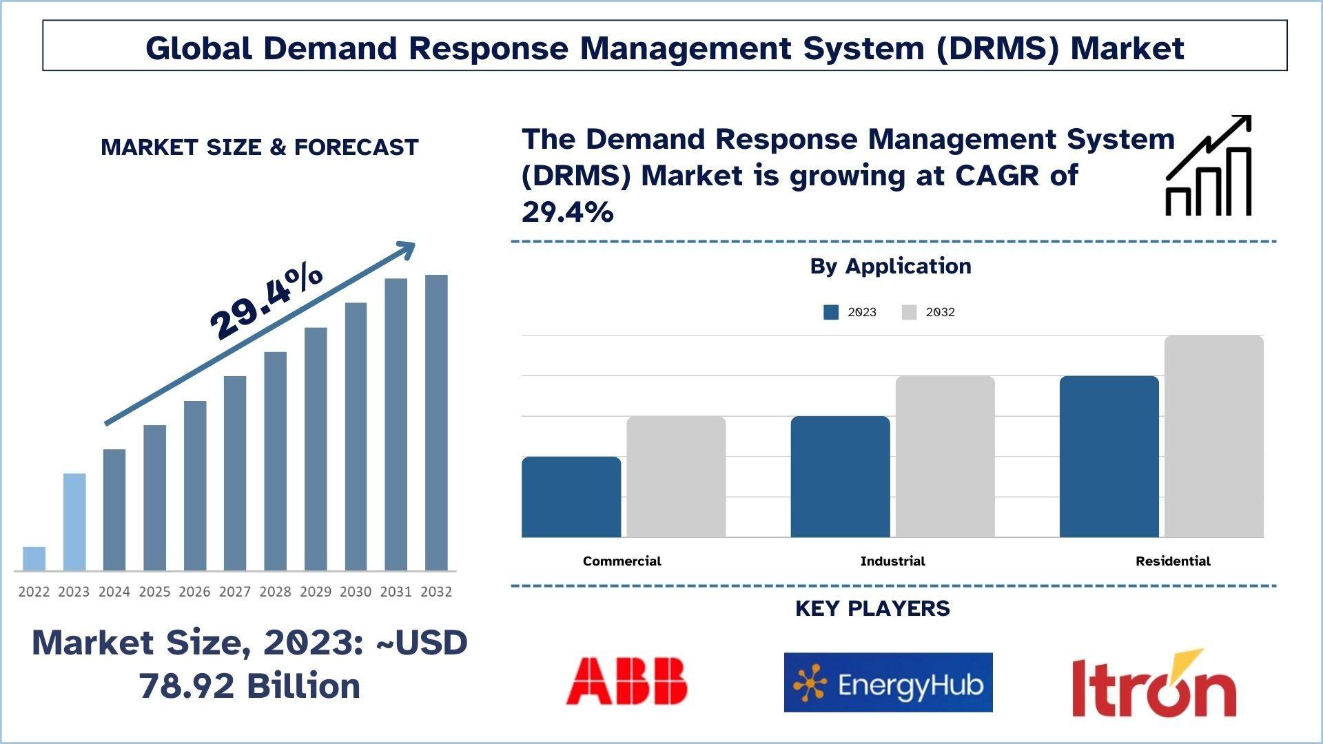 The global Demand Response Management System Market was valued at USD 78.92 billion in 2023 and is expected to grow at a strong CAGR of around 29.4% during the forecast period (2024-2032) owing to the combination of DRMS with energy storage systems allowing utilities to manage supply-demand balance more effectively.