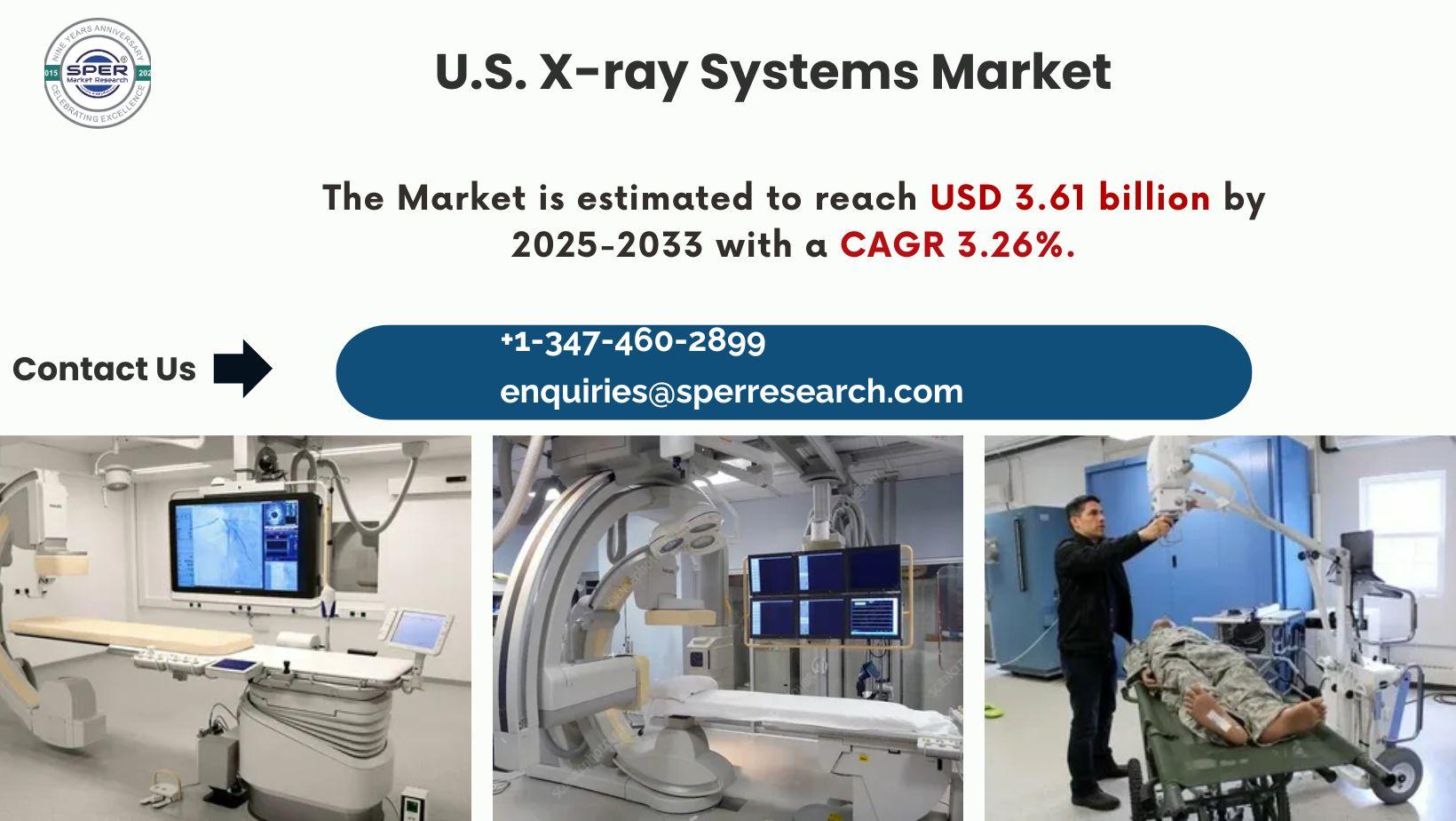 According to SPER market research, ‘U.S. X-ray Systems Market Size- By Modality, By Technology, By Mobility, By End User - Regional Outlook, Competitive Strategies and Segment Forecast to 2034’ state that the U.S. X-ray Systems Market is predicted to reach 3.61 billion by 2034 with a CAGR of 3.26%.