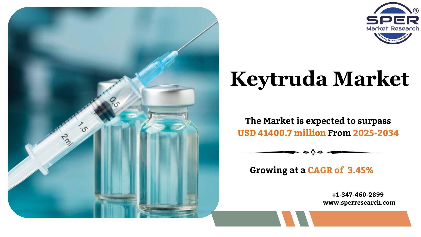 According to SPER market research, ‘Global Keytruda Market Size- By Application, By Payer, By Distribution Channel - Regional Outlook, Competitive Strategies and Segment Forecast to 2034’ state that the Global Keytruda Market is predicted to reach 41400.7 Million by 2034 with a CAGR 3.45%.
