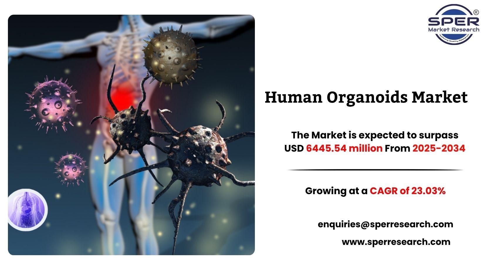 According to SPER market research, ‘Global Human Organoids Market Size- By Product, By Organ Type, By Application, By End User - Regional Outlook, Competitive Strategies and Segment Forecast to 2034’ state that the Global Human Organoids Market is predicted to reach 6445.54 million by 2034 with a CAGR of 23.03%.