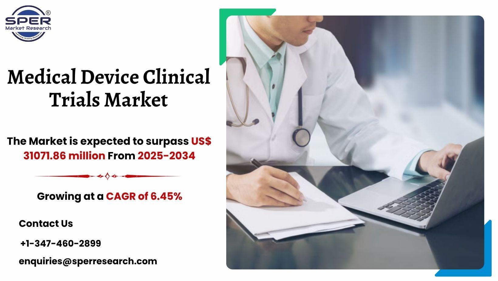 According to SPER Market Research, ‘Global Medical Device Clinical Trials Market Size- By Study Type, By Study Design, By Indication - Regional Outlook, Competitive Strategies and Segment Forecast to 2034’ state that the Global Medical Device Clinical Trials Market is predicted to reach 31071.86 Million by 2034 with a CAGR 6.45%.