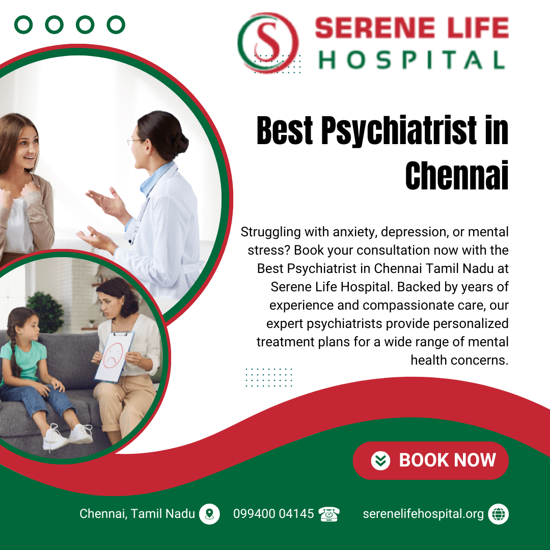 Struggling with mental health challenges? Connect with the Best Psychiatrist in Chennai Tamil Nadu at Serene Life Hospital, your trusted destination for professional psychiatric care. Our experienced psychiatrists provide compassionate treatment for anxiety, depression, stress, bipolar disorder, sleep disorders, and other emotional health concerns. At Serene Life Hospital, we focus on personalized care, advanced therapies, and a confidential, supportive environment to help you regain balance and well-being. With a patient-centered approach and a team dedicated to your recovery, we ensure that every individual receives the right guidance and treatment for lasting mental wellness. Conveniently located in Chennai, we are a top choice across Tamil Nadu for expert psychiatric services. Don’t wait to prioritize your mental health — take the first step toward a healthier, happier life today.