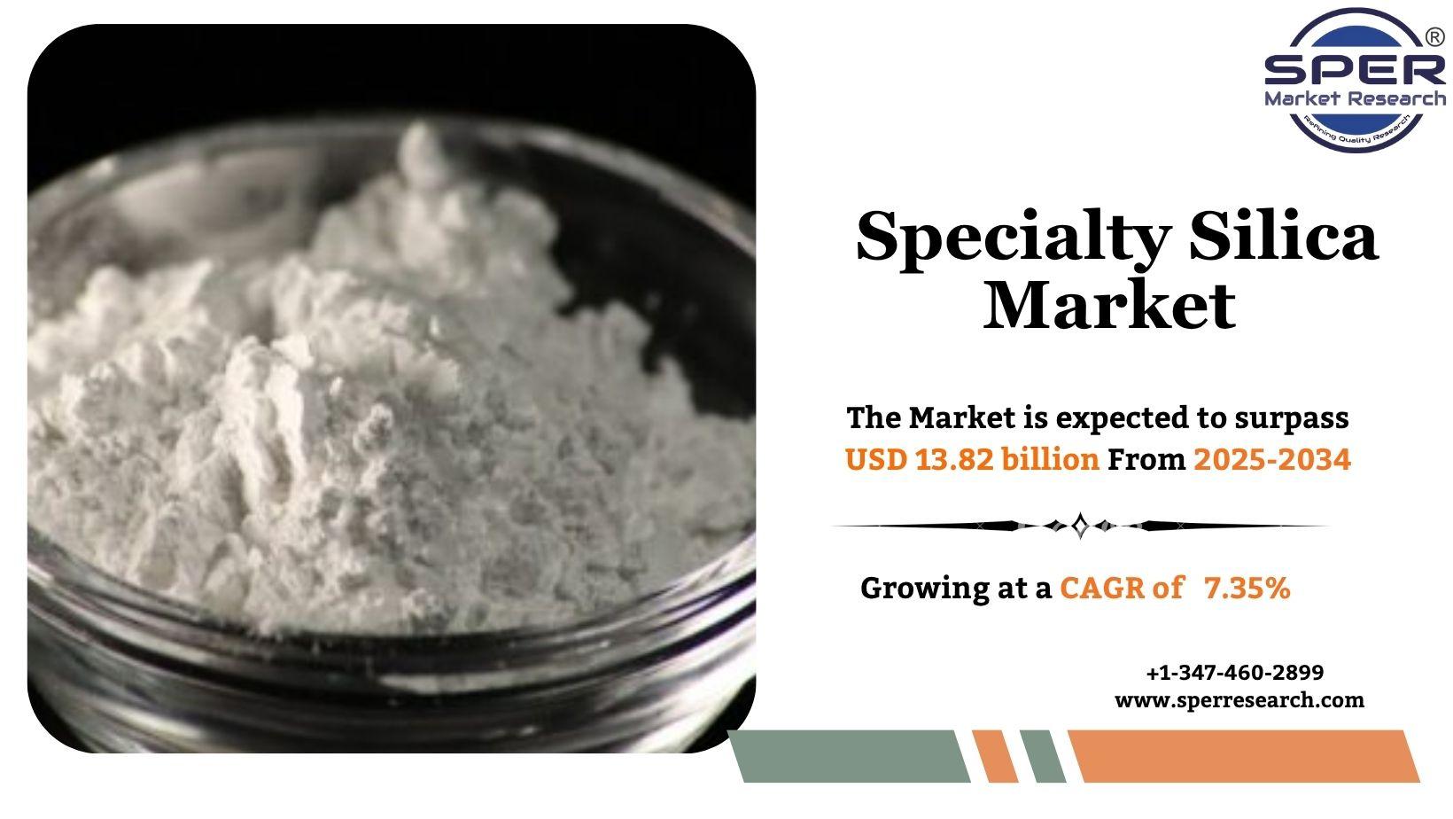 According to SPER market research, ‘Global Specialty Silica Market Size- By Product, By Application - Regional Outlook, Competitive Strategies and Segment Forecast to 2034’ states that the Global Specialty Silica Market is predicted to reach 13.82 billion by 2034 with a CAGR of 7.35%.