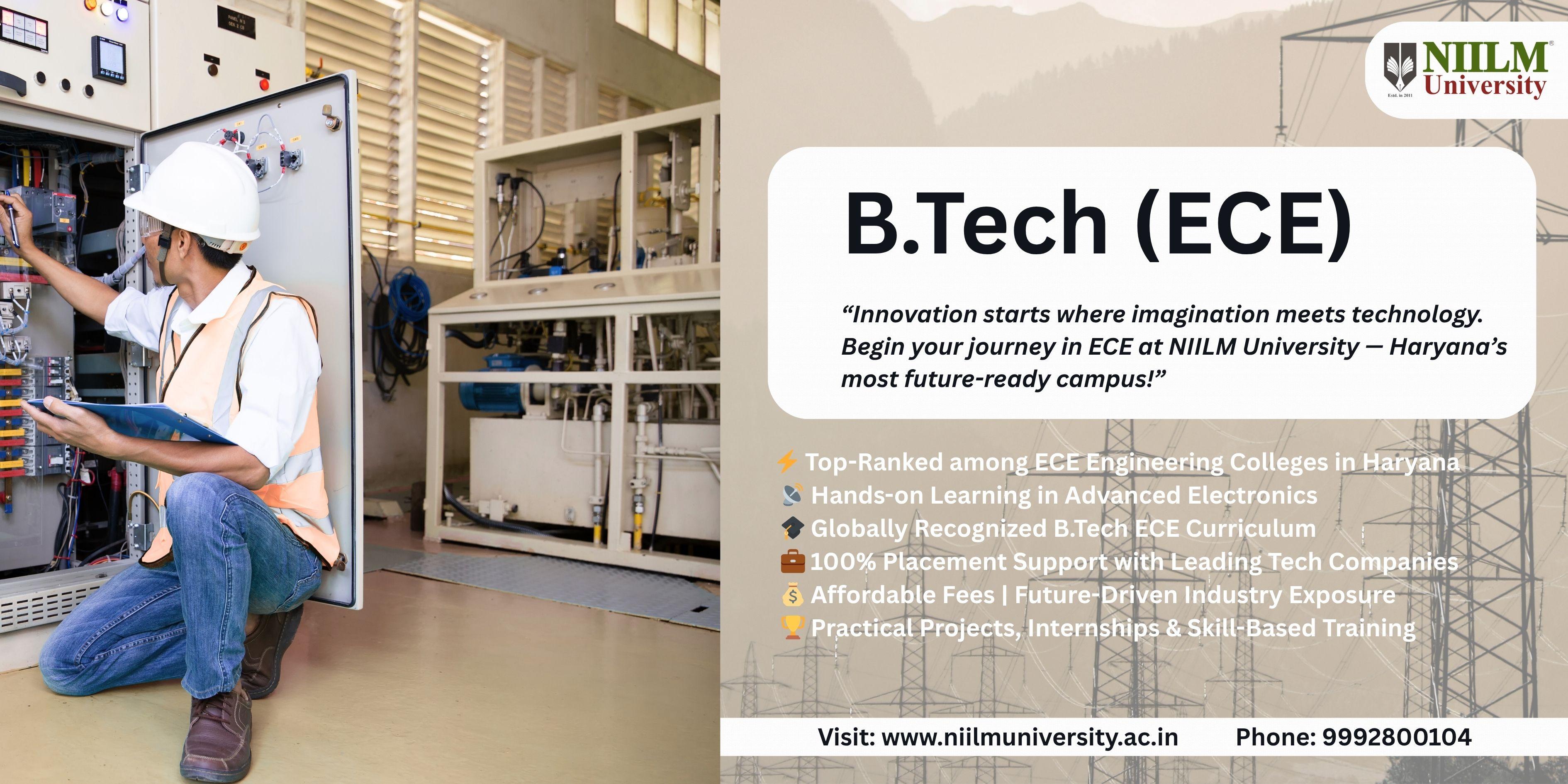 In a world where technology evolves every second, we live in an era driven by innovation—smartphones controlling homes, robots assisting surgeries, satellites managing communication, and AI reshaping industries. Behind every such breakthrough stands the power of Electronics and Communication Engineering (ECE). It is one of the most dynamic and future-focused engineering fields, building the technologies that society relies on today and will depend on tomorrow. For students who dream of building intelligent machines, designing next-gen electronic devices, or contributing to global communication networks, choosing the right university becomes the most defining decision. Among engineering institutions in India, NIILM University has emerged as the best ECE university Haryana, recognised for its modern learning approach, innovation-driven ecosystem, advanced laboratories and outstanding placement support. NIILM University offers an industry-integrated and progressive B.Tech in Electronics and Communication Engineering, empowering students with deep technical knowledge, hands-on engineering skills, and a mindset built for research, creativity and global competitiveness. This makes NIILM University the preferred destination for aspiring engineers who wish to stand out and lead the future. ________________________________________ 🌟 Why Electronics and Communication Engineering at NIILM University is a Game-Changer A Curriculum Designed for Tomorrow’s Technologies Unlike traditional theory-based courses, the Electronics and Communication Engineering programme at NIILM University is designed around real-world industrial challenges, modern engineering tools, and future-ready technologies, ensuring students become industry-ready from day one. Students explore cutting-edge fields such as: • IoT (Internet of Things) Engineering • Robotics & Industrial Automation • 5G & Wireless Communication Networks • VLSI & Semiconductor Technology • Embedded System Design • Artificial Intelligence & Machine Learning Applications • Satellite & Radar Communication • Consumer and Medical Electronics • Smart Device & PCB Product Development Every component of the curriculum is carefully crafted to transform students into skilled engineers capable of solving real problems through technology. ________________________________________ Learning Beyond Classrooms – Real Projects, Real Tools, Real Experience At NIILM University, engineering education extends far beyond textbooks. Students work in state-of-the-art laboratories, research centres and project-based environments where creativity meets engineering excellence. They gain practical exposure through: • Circuit & PCB Design Workshops • IoT and Robotics Lab Experiments • Communication and Networking Simulations • VLSI Design Training Modules • Multidisciplinary Innovation Projects • Industry Internships & Industrial Visits Such training builds confidence and empowers students to build, test and launch their own engineering solutions. ________________________________________ Strong Placement Ecosystem & Corporate Partnerships With strong industry connections and internship opportunities, NIILM University provides students with access to career opportunities in leading national and global companies. The university offers: • Professional placement training and mock interviews • Internships in electronics, telecom, IT, automation and R&D sectors • Corporate mentoring and industry-expert interaction sessions • Technical skill development tailored for top recruiters ECE graduates receive opportunities in various domains through careers in: • Telecommunication and Networking Companies • Smartphone, Semiconductor and Chip Design Industries • Automotive and Automation Firms • Space, Aerospace, Defence & Research Organisations • IoT, AI, Robotics & Startup Ecosystems • Government and PSU sectors such as ISRO, DRDO, BEL, BHEL, NTPC, Indian Railways, BSNL ________________________________________ Research, Innovation & Entrepreneurship Support NIILM University encourages creativity and innovation at every level. Students are supported in developing prototypes, writing research papers, presenting at conferences, and even applying for patents. The campus provides a nurturing environment where ideas become start-ups and engineers become entrepreneurs. This culture of innovation is a major reason why NIILM University is continuously recognised as a leading engineering hub in the region. ________________________________________ 🌐 Why NIILM University is Recognised as the Best ECE University Haryana • Future-ready curriculum aligned with global industries • Advanced laboratories and research-driven learning • Hands-on workshops, internships and live industrial training • Strong placement support & career-oriented mentoring • Technologically advanced learning environment • Vibrant and supportive campus life for overall growth • Focus on creativity, problem-solving and leadership development NIILM University truly transforms students into industry-ready engineers who think smart, act responsible and innovate fearlessly. ________________________________________ 🎓 Career Opportunities After Electronics & Communication Engineering One of the strongest advantages of pursuing Electronics and Communication Engineering is the diversity of career options. Graduates build professional careers in: • Electronics Hardware Engineering • Automation & Control Systems Engineering • Embedded Systems & IoT Engineering • Telecom / Network Engineering (4G / 5G / Satellite) • Chip & Semiconductor Design (VLSI) • Cyber-Physical Systems & Robotics • Technical Analyst & Research Engineering • Software Engineering & IT Development Students with research ambitions also explore M.Tech and PhD in specialised domains, while many launch their own tech-startups. ________________________________________ 🚀 Your Future in Techno