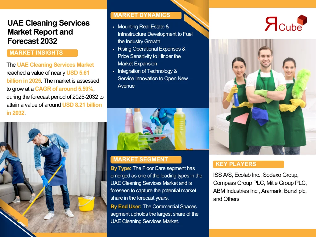 The Report Cube, a leading provider of industry-focused research insights, has released a comprehensive report titled UAE Cleaning Services Market Report and Forecast 2032 analyzing the latest trends and forecast data for the market. The study covers market size, growth rate, segment analysis, regional breakdowns, and competitive intelligence.