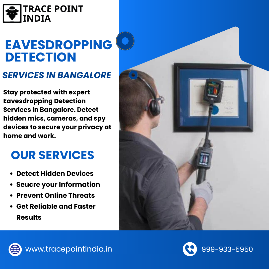 #EavesdroppingDetectionServices #Bangalore #BugSweeping #TSCSM #PrivacyProtection #CorporateSecurity #HiddenCameraDetection #InformationSecurity #StaySecure #PersonalSafety #TracePointIndia